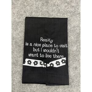 Mud Pie Hand Towel Linen Embroidered Black White 22x 14 Reality Is A Nice Place