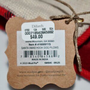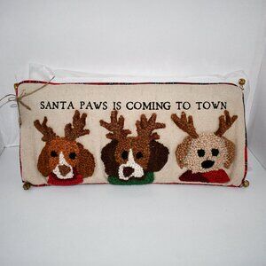 Mud Pie Holiday Collection Santa Paws Hooked Pillow #41600911S NWT