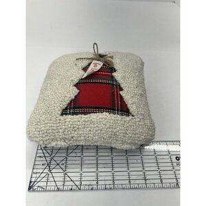 Mud Pie Hooked Wool Plaid Christmas Tree 8" Pillow Velvet Back Fa La La
