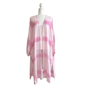 Mud Pie Kimono Duster Pink White Tie Dye Balloon Long Sleeve Cover Up OS NEW