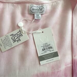 Mud Pie Tuscany Pink White Tie Dye Balloon Sleeve Open Front Kimono