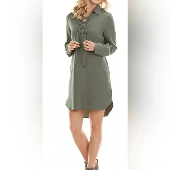 Mud Pie Kinsley Lace Up Dress Olive size S