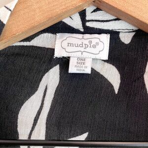 Mud Pie Leaf Print Kimono Cardigan Swim Cover in Black and White. Tassel trim detail. Open front. Pre-owned in excellent condition, one size (O/S).