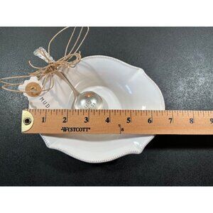 Mud Pie Let's Salsa Pewter Spoon & White Ceramic Serving Bowl Set w/ Gold Bead Trim