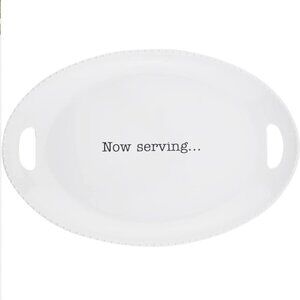 🍽️ Mud Pie – Melamine Beaded Platter “Now Serving” – White – NWT ✨