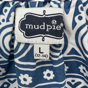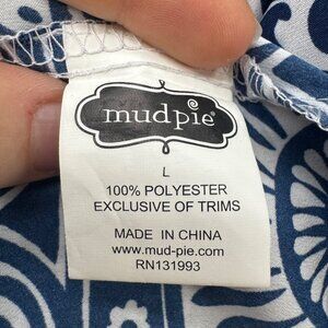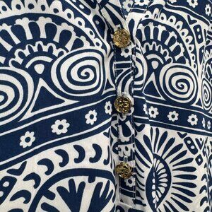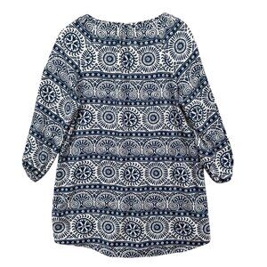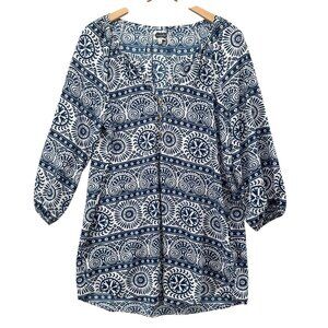 Mud Pie Mosaic Tunic Womens Blue White 3/4 Balloon Sleeve V Neck Size L