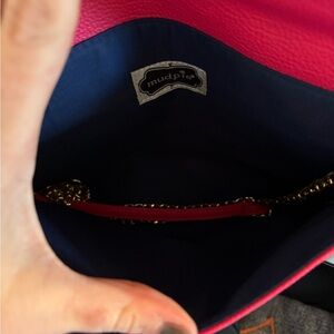 Vibrant pink crossbody bag. Sleek and stylish design. Perfect for any occasion.