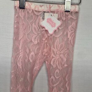 Charming pink lace baby tights with delicate ruffles. Ideal for special events.