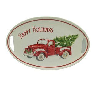 Mud Pie Platter Happy Holidays Red Truck With Christmas Tree Platter