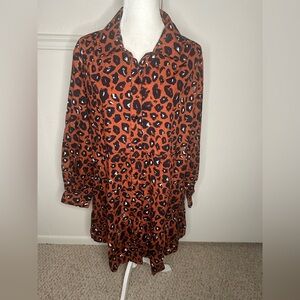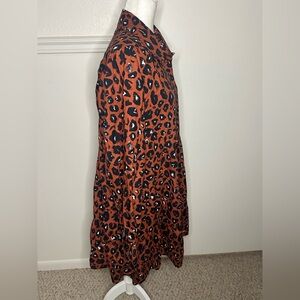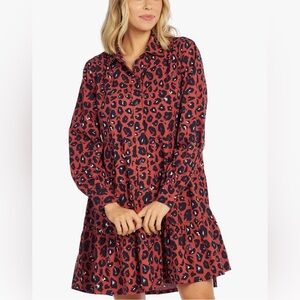 From website: Our Polly Tiered Dress is perfect for the Fall! This cotton poplin shirt dress in rust features a button front tiered bodice and long sleeves.