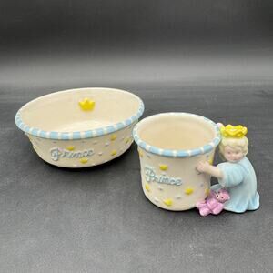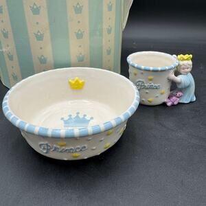 Mud Pie Prince Bowl and Cup Set for Baby Boy