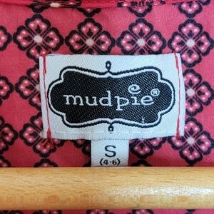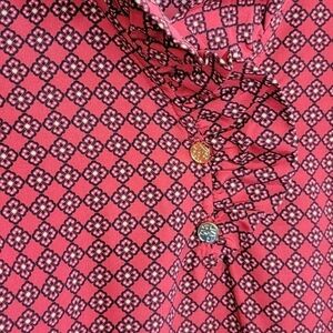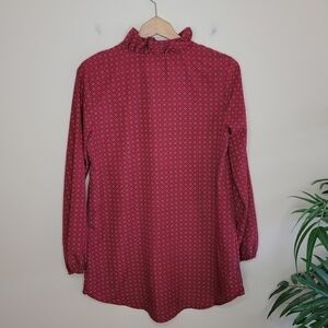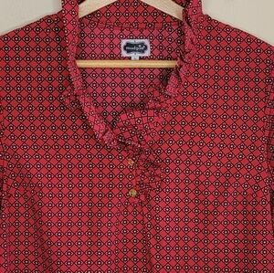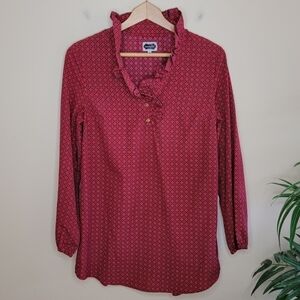 Mud Pie | Red Diamond Floral Long Sleeve Tunic Blouse Ruffle Collar Size Small
