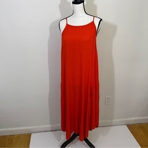 The Mud Pie Red Halter Sundress is a perfect choice for casual and resort wear. This sleeveless midi dress features a striking red hue and a flattering halter neckline, offering a chic and comfortable style. Its lightweight fabric ensures ease of movement, making it ideal for warm, sunny days. Measurements from pit to pit is about 20” as the dress starts to flair out. The length of the dress is about 40” and the sides are six “ shorter than the front or back. Very pretty as a special occasion also no visible flaws measurements any questions please ask.