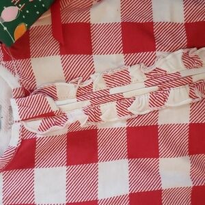 Mud Pie Red and White Check Ruffle Front Onesie with Holiday Book
