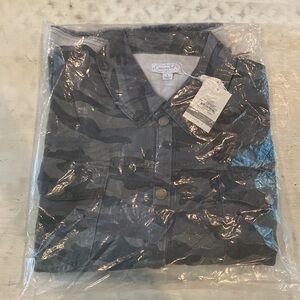 The forecast is calling for this Sterling black tie-dye shacket. The cotton twill shirt jacket features chest pockets, metal snap front closure and raw edge curved hem. No matter where you're going or what the temperature calls for - shop our ever-versatile shacket.