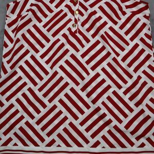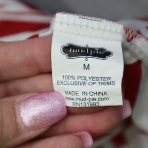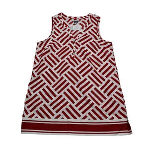 Mud Pie Shirt Womens M Red White Sleeveless Button Polyester Geometric Blouse