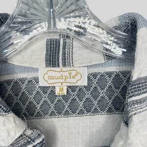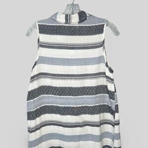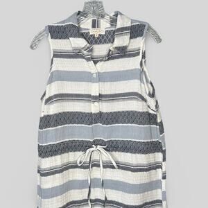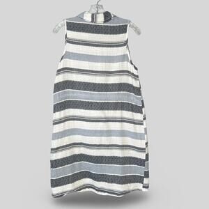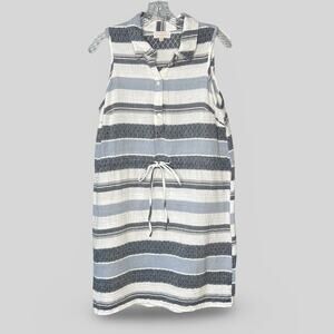Mud Pie sleeveless textured striped dress. It has a collar and a few buttons down the neck.