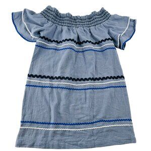 Mud Pie Smocked Off-Shoulder Blue Striped Dress S Cotton