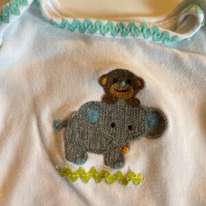 Mud Pie White Monkey Elephant Appliqué Sleeping Gown 0-3M