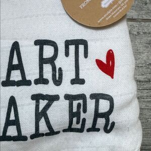 Charming bandana bib set with 'Heart Breaker' print and hearts on other. White with red accents. Perfect for stylish outfits.
