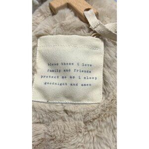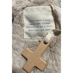 Your little sweetie will love cuddling up with our Bear Cuddle Teether every night. The faux fur plush cuddler features a canvas front pocket in the center. The front pocket features a sweet blessing prayer on it. The front pocket holds the attached wooden cross teether.