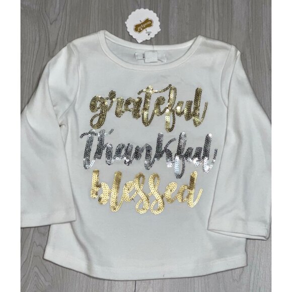 Mud Pie sequin Thanksgiving fall shirt Grateful Thankful blessed 12-18m white go