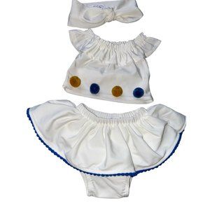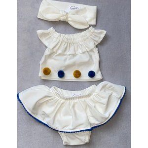 Mud Pie white bikini 2pc swim bathing suit headband 3pc set 3-6m NWOT