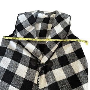 Wrap yourself up the comfy style of this Mud Pie Women's Blanket Vest! This one size fits most vest is crafted with a super soft, warmth-inducing blend of fabrics, featuring an eye-catching black plaid look.