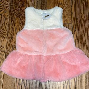Mud Pie GIRLS LAYERED WHITE & PINK FUR VEST SIZE 2/3T