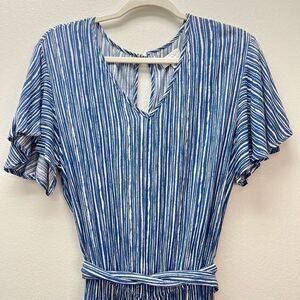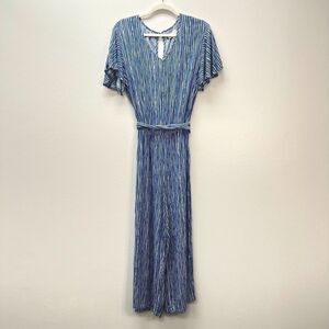 Mud Pie Rayon Striped Blue Jumpsuit Flutter Sleeves NWOT Size S