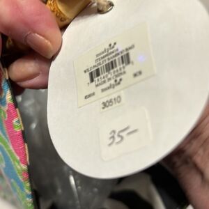 Mud pie Bag Lady Tote NWT but zippered pocket has yellow (glue) discoloration. Smoke free & Pet free home. See ALL photos for complete description/details.