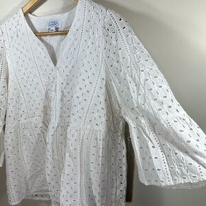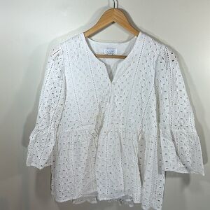 Mud pie Size Large Eyelet White Lacey Top Blouse