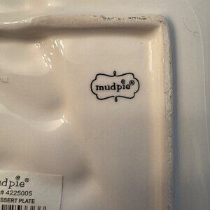 Mud pie Square Christmas tree Dessert plate Burlap Bow New Stripes Holiday RARE