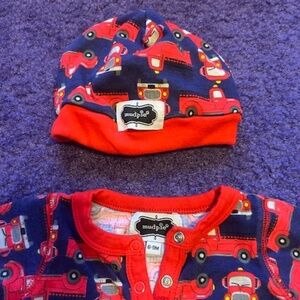 Mud pie red fire truck matching set - Pants, long sleeve shirt and hat