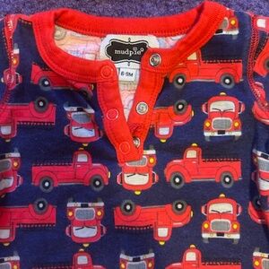 Mud pie red fire truck matching set - Pants, shirt and hat - 6-9 M