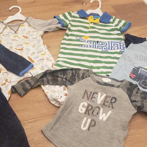 This bundle includes 3 MudPie onesies (6-9 months), 2 MudPie short sets (12-18 months) and 1 MudPie shirt (12-18 months). All in perfect condition and very cute. Get all or offer me for specific ones. Thank you!