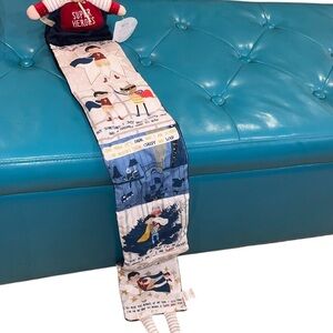 Charming Mud Pie Superhero Storybook Doll featuring a plush superhero boy attached to a long fabric “story blanket” that unfolds into illustrated panels. Perfect for interactive play, bedtime stories, or nursery decor. Makes a thoughtful baby shower or birthday gift for little superhero fans.