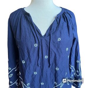 MudPie Size Small Long Sleeve Flare Bell Sleeved Embroidered Navy Blue Tunic