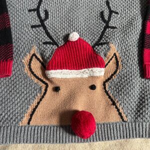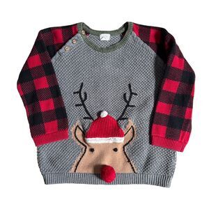 MudPie gray reindeer sweater kids 4T-5T buffalo plaid Christmas holiday cozy