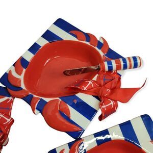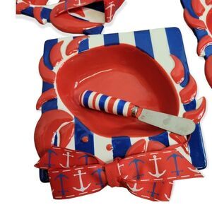 Mud Pie set of 4 crab dip bowl with spreader, nautical red white blue. Would like to keep as a set. 6x6.5"