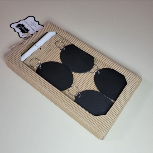 This Chalkboard Wine Charm Set by Mud Pie will make your party a hit. Easily mark bottles and glasses with blackboard charms for a functional and stylish look. Never forget which glass is yours when you write your name on these re-writable wine charms. Simply wipe clean and reuse again and again. Traditional chalk, chalk ink or chalk pen can be used. Makes a great hostess gift!