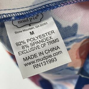 Mud Pie Dress Women's Size Medium Blue & Pink Bold Floral Pattern Cold Shoulder Dramatic Ruffle Sleeve Knee Length Stretch Material May Occasions Dress, Baby Shower, Work, Church, Wedding, Night Out, Preppy Bright Fun, Figure Flattering