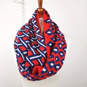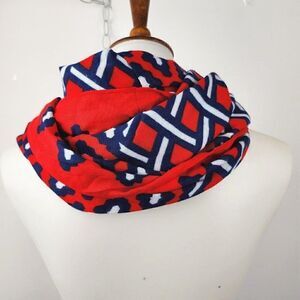 Mud Pie Gameday Infinity Scarf Black Red Geometric Print Lightweight EUC