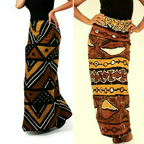Made in Mali, Africa of luxurious mudcloth, this skirt is a stunner! Waist measures varies from approximately 66"-70" (unwrapped). This one size piece could accommodate anyone from 24" up to a 56" waist comfortably. Each one is one of a kind so designs vary.