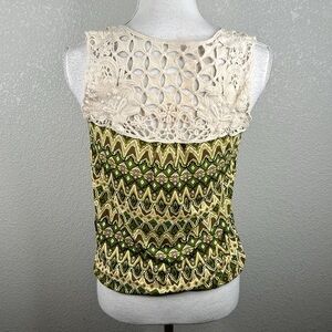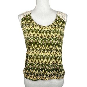 Mudd 90's Y2K Green Brown & Cream Embroidered Tank Top Size Medium