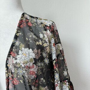 Mudd Black Floral Kimono Sheer Boho Shabby Chic