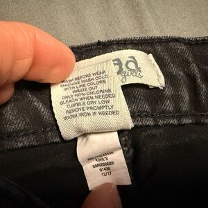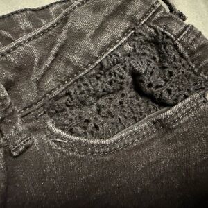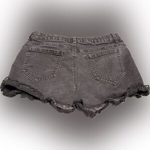 Stylish black jean shorts featuring elegant lace trim. Perfect for everyday wear.
