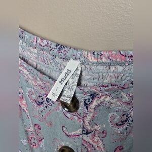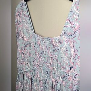 Mudd Boho Pastel Paisley Milkmaid Cottagecore Smocked Dress, Large