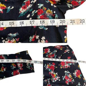 Mudd Button Up Long Sleeve Shirt Black and Red Floral Casual Top Womens Size XL