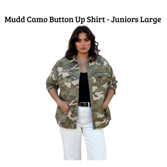 Mudd Camo Button Up Shirt – Juniors Large – 100% Cotton